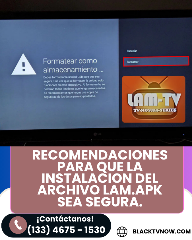 Antes de realizar todos los pasos o de instalar lamtv panel, revisa que al menos tu televisión cuente con 10MB de espacio libre. Toma en cuenta utilizar una USB formateada en FAT32, lo que significa que debes preparar tu USB para que pueda almacenar dato, es necesario borrar todo su contenido y organizarlo bajo este archivo FAT32, ya que en este archivo se puede organizar y almacenar contenido. Debes mantener una versión actualizada del sistema de Android TV, ya que se necesita de compatibilidad tanto en el sistema como en el archivo. Una vez realizado los pasos si llega a fallar la descarga te recomendamos instalar de nuevo el archivo lamtv.apk, esto puede llegar a suceder si se descarga de forma incompleta, por eso te recomendamos hacer estos requisitos y seguir los pasos uno por uno para que la instalación no presente fallos.